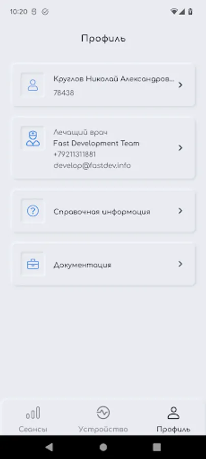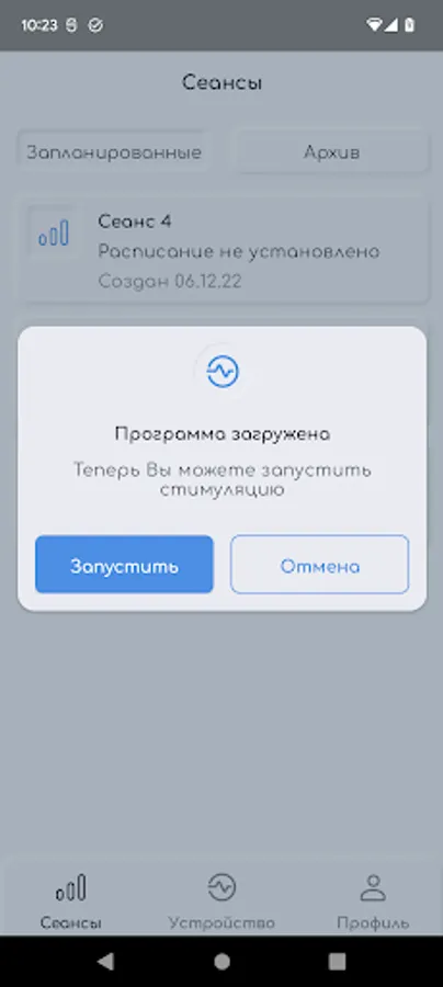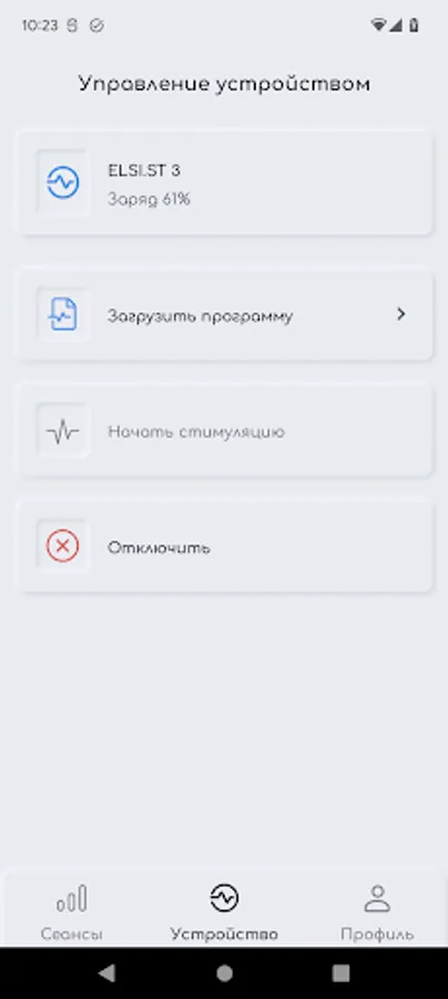 A specialized application for conducting stimulation sessions for patients using specialized ElSy equipment