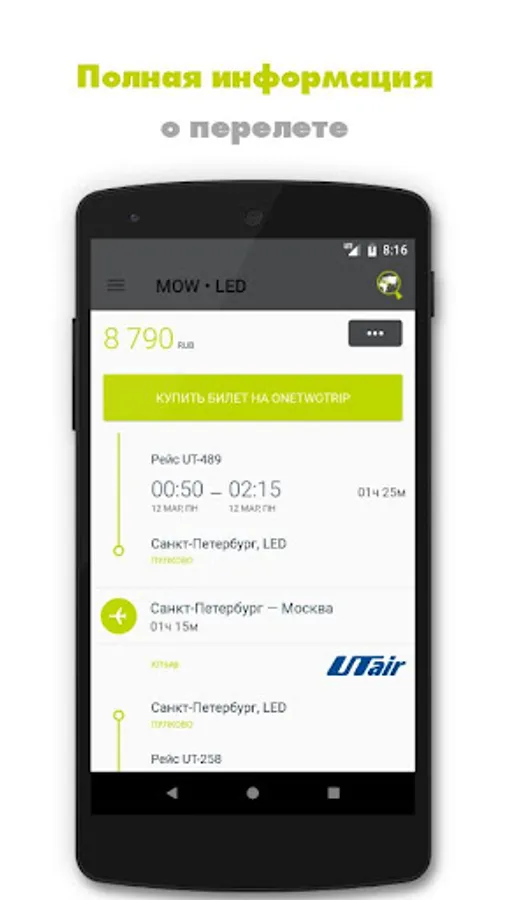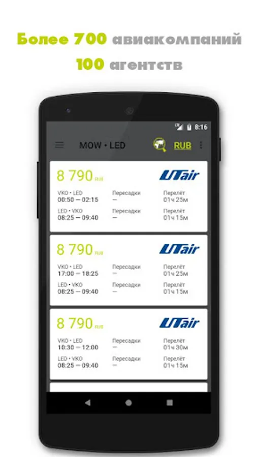 * The app allows you to find the lowest possible cost of a plane ticket from point A to point B. In the search you can find tickets from Airlines victory, Azimuth, Aeroflot, the S7 and many others. We do not sell tickets, we are looking for the best alternative flights. You decide where to buy and how to pay for the ticket.