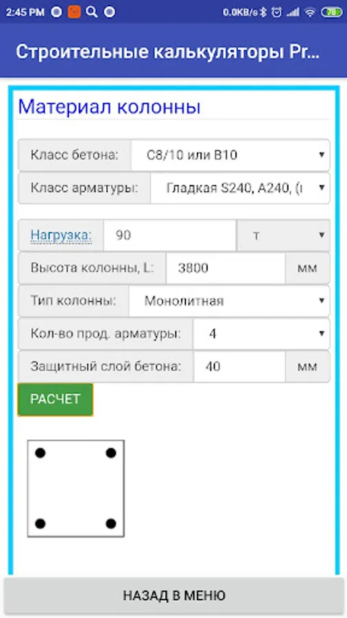16. Calculation of reinforced concrete columns (selection of working fittings)