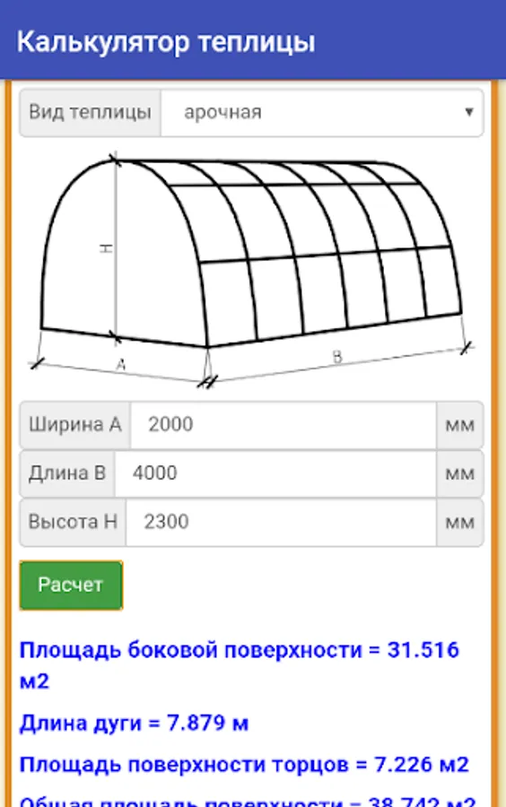 If you decide to build or order a greenhouse at your dacha, and you need to calculate the amount of material that will go there, use this calculator.