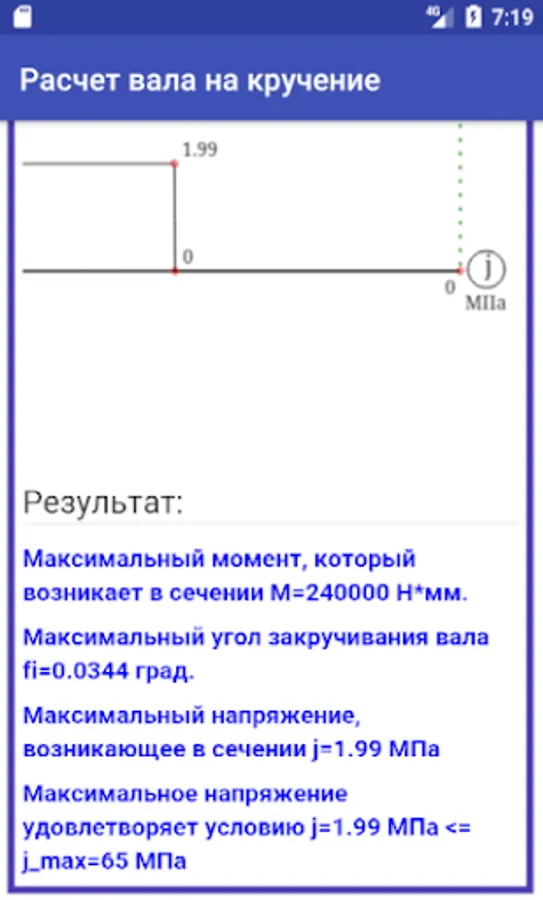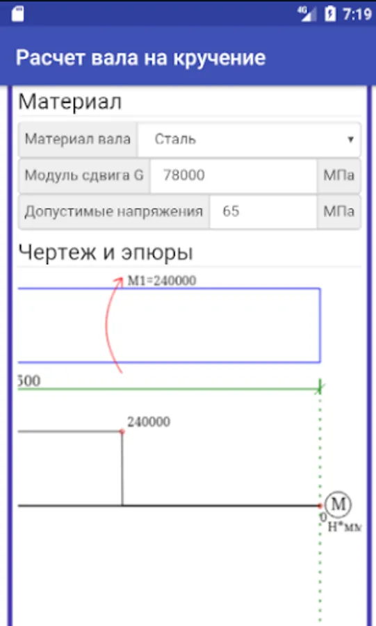 - the values of the shear modulus G and the maximum allowable shear stresses j are rounded to simplify the calculation, therefore, to more accurately determine the twist angle and shear stresses, specify the shear modulus and shear stresses yourself