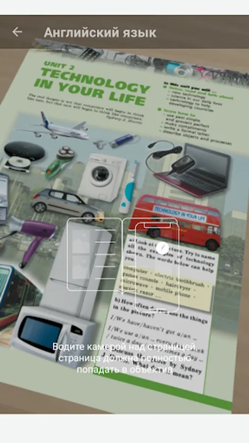 Using the camera of the mobile device, the student can see buttons on the pages of the textbook in augmented reality (AR). By pressing the button the student gets access to additional educational content – various materials (video, audio, 3D model) and tasks which can be completed right in the application.