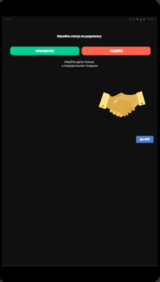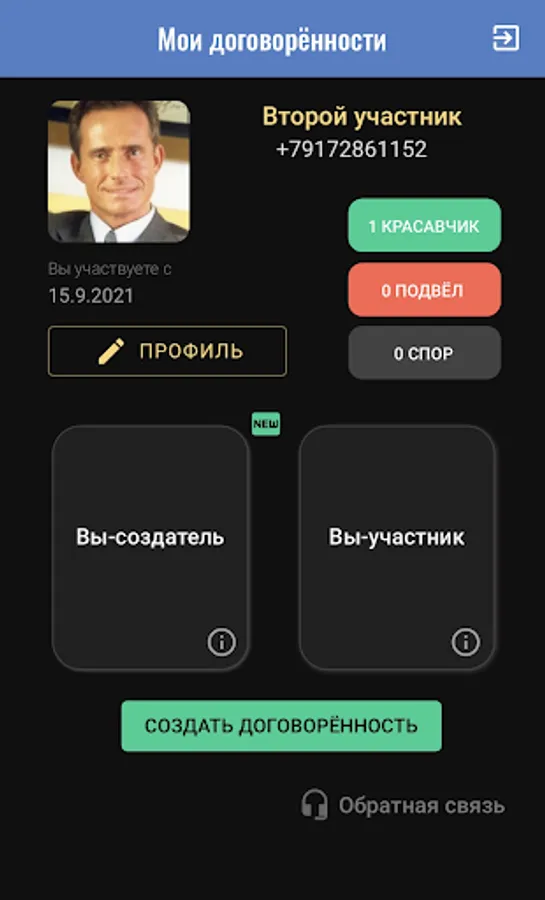 participates in the rating system of the Service, where it is assigned a value from “reliable partner” (with the full implementation of the agreement) to “the person who lets people down” (if the agreement is not fulfilled).