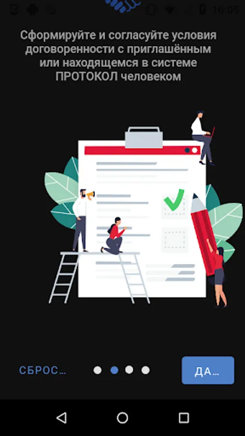 an impartial system of fixing the agreement itself and its conditions, as well as a platform for communications (clarification, informing, etc.) in the process of execution of the agreement by the parties. The party that sent the invitation ("invite") with the terms of the agreement is fully responsible for the fulfillment of the conditions put forward by it.