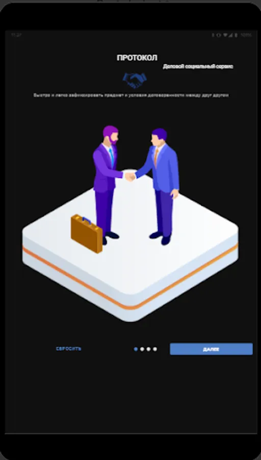 03. Sending an invite to an existing or not yet registered partner (user). Send an invitation (invite) to one or several existing partners (users), or partners outside the business social Service, to invite them to conclude an agreement. If the partner is not a user of the application, then by clicking on the invite he will be able to go through a quick