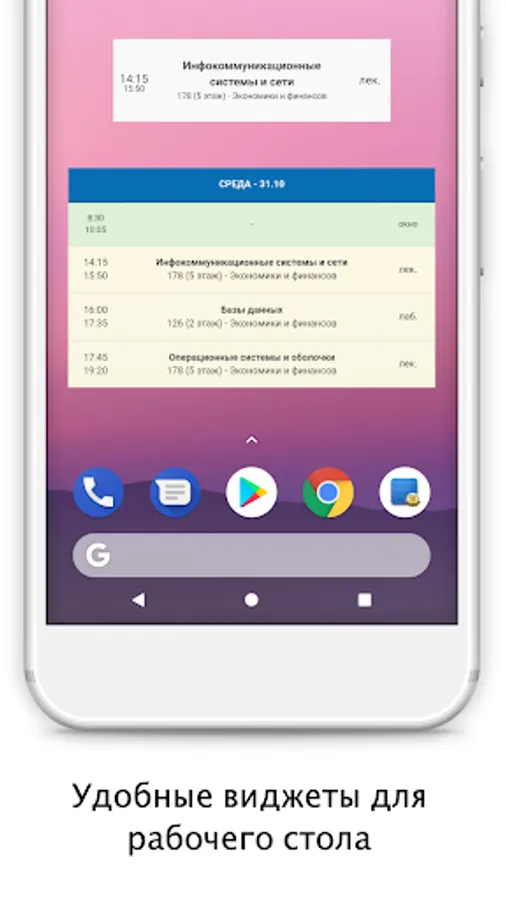 - Two handy desktop widgets with a schedule for the current day or a display of the next pair