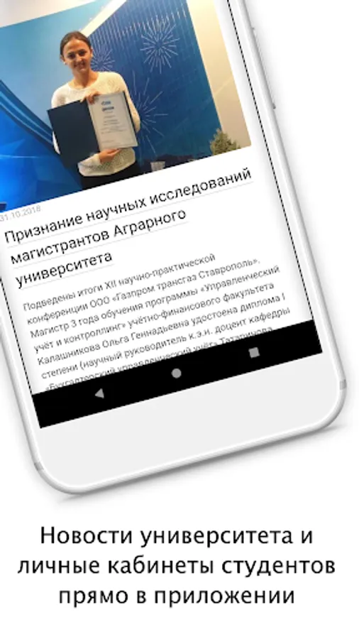 The SSAU application will help you stay up to date with all the events of the university, keep track of the current schedule, use all the features of the student’s personal account (when logging in at stgau), chat with classmates in the online chat, and receive important notifications about the life of the university and group