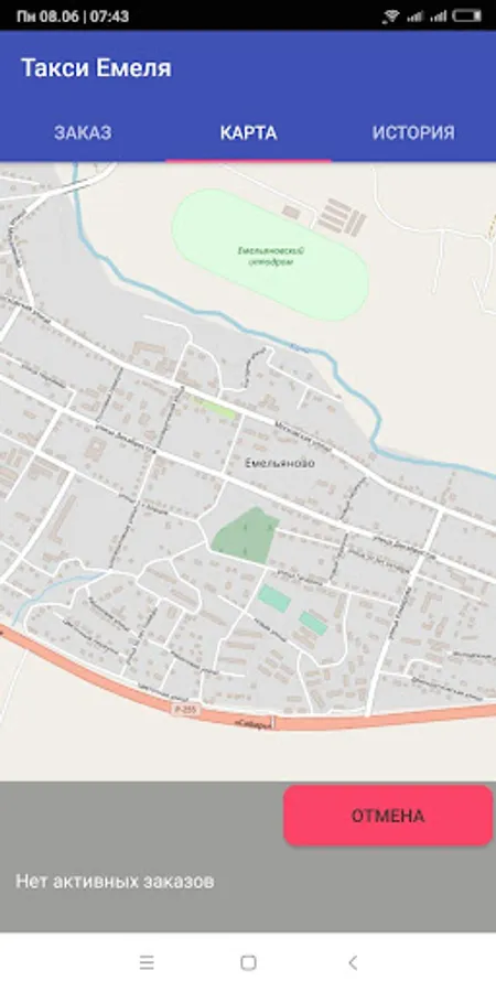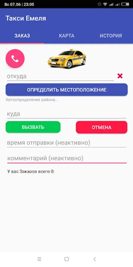 Taxi service Emelya in the town of Emelyanovo, Krasnoyarsk Territory. This application carries the main functionality for calling a taxi and displaying the status of the order that the client wished to make in the taxi service.