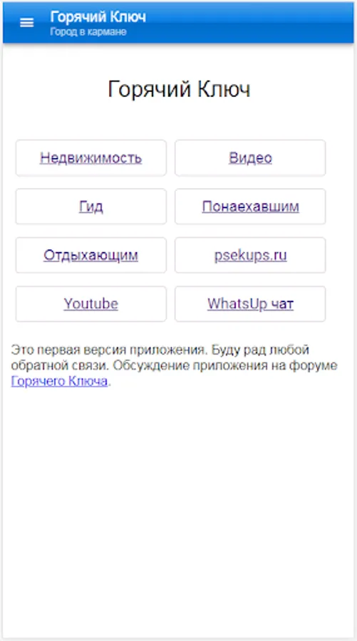 Information for visitors and immigrants, real estate ads, links to videos, descriptions of the attractions of the Hot Key. Guide to the resort park.
