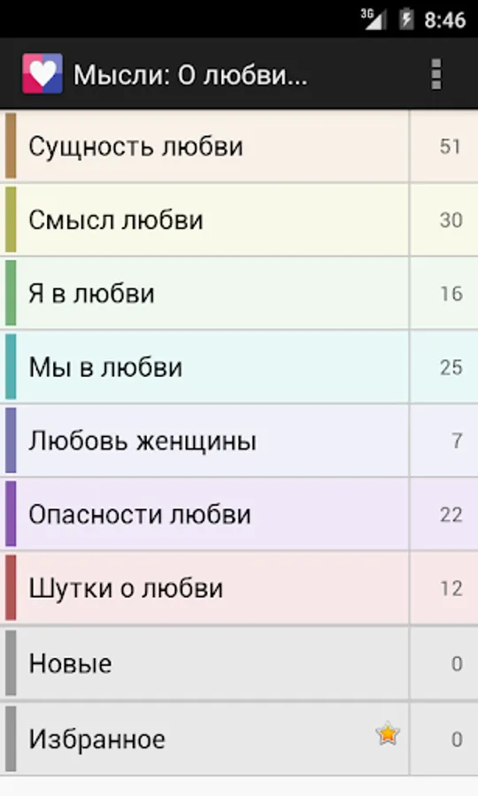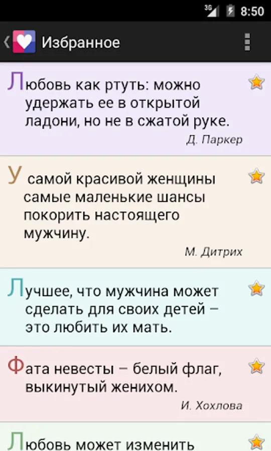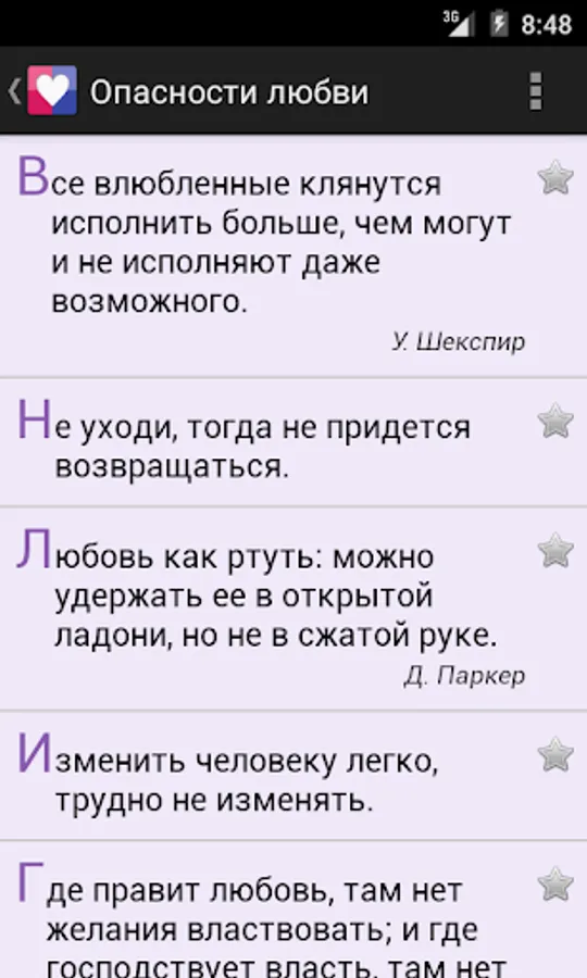 If you want to share an interesting quote or aphorisms about love - write them in a review or by e-mail to the developer.