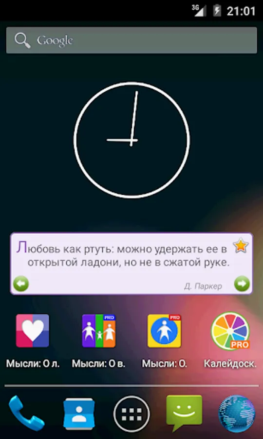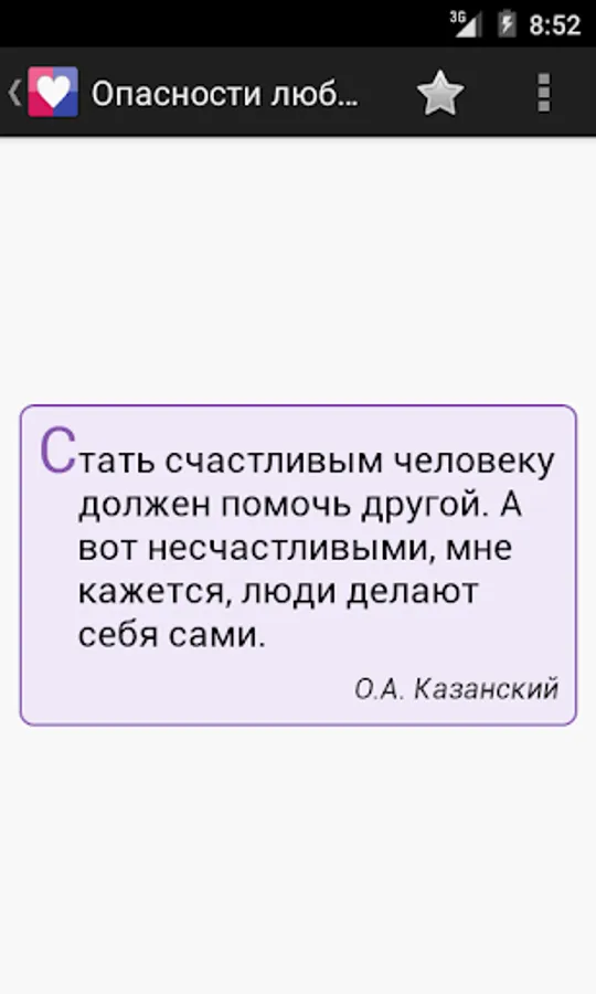 The application contains a structured collection of thoughts and quotes about love, the reading of which will help to better see the causes of the problems in the relationship, to understand a loved one, make the relationship brighter and warmer. You will not find ready-made answers to their questions, but get "food for thought" and perhaps find clues to solve their problems. The widget will help you to enjoy every day a stranger bits of wisdom.