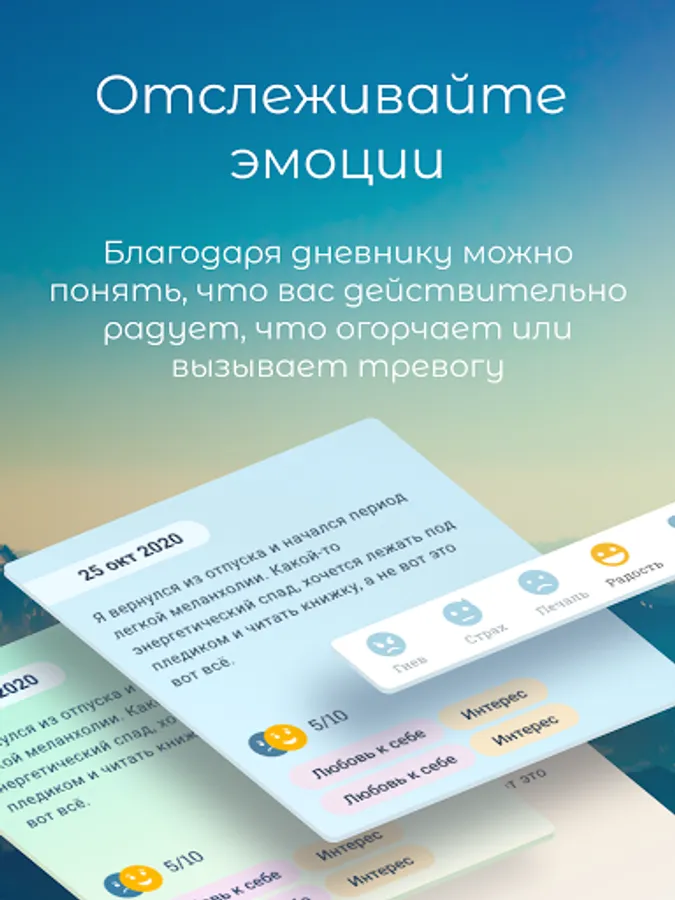 In addition to completing simple tasks, an emotion diary is available to you to keep track of your thoughts, the situations that triggered them, as well as the emotions that arise in these moments. Using a journal can help you understand what makes you happy, what makes you sad or anxious, and what helps you cope with stress.