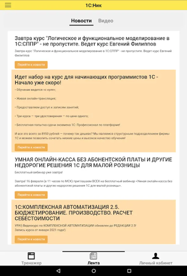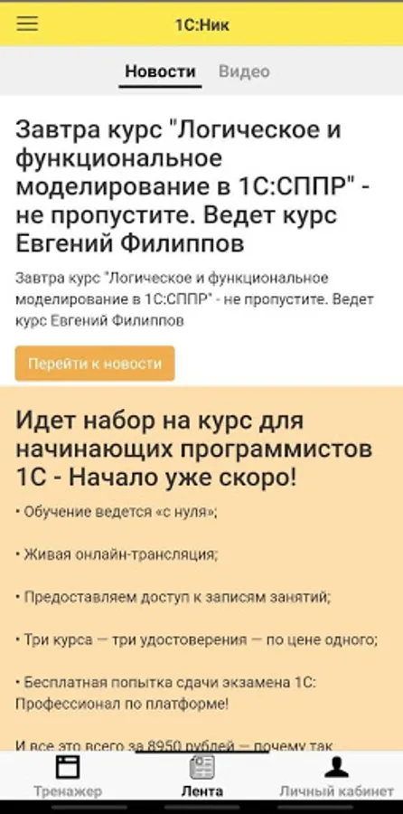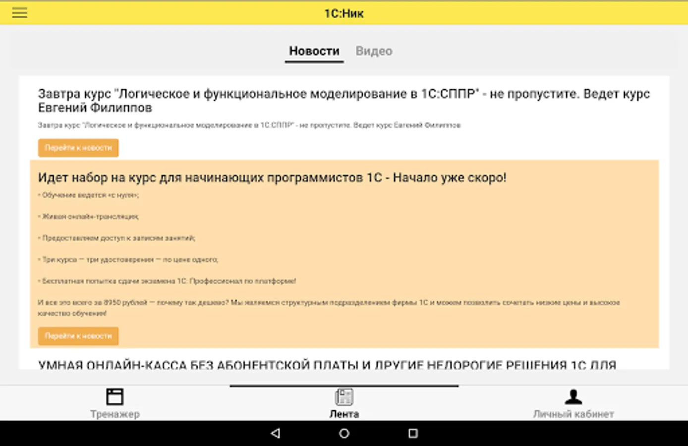 1C: Nick is a mobile application from 1C: Training Center # 1.