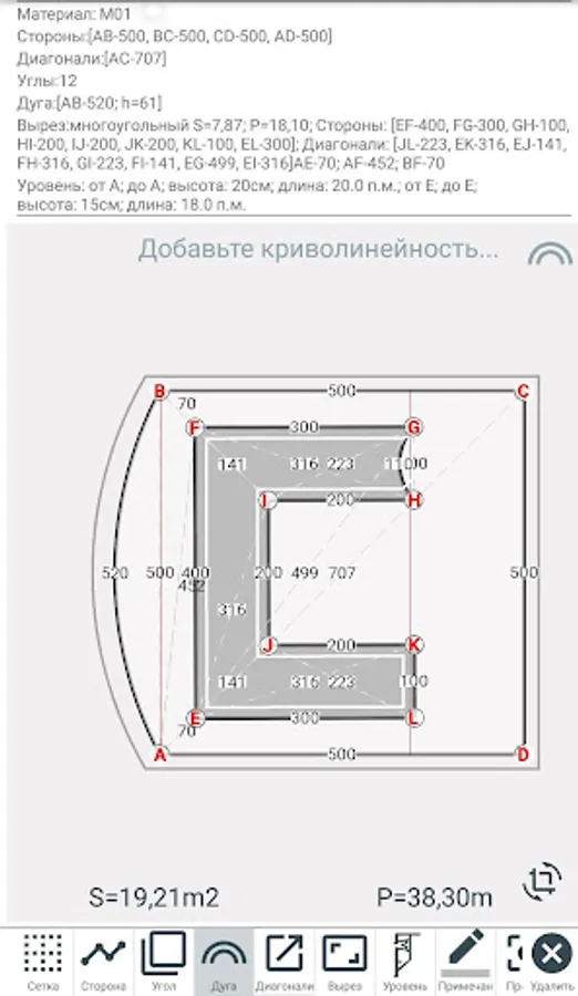 The convenience of entering measurements, ease of setting angles and arcs is provided by intuitive manual drawing on the touch screen.