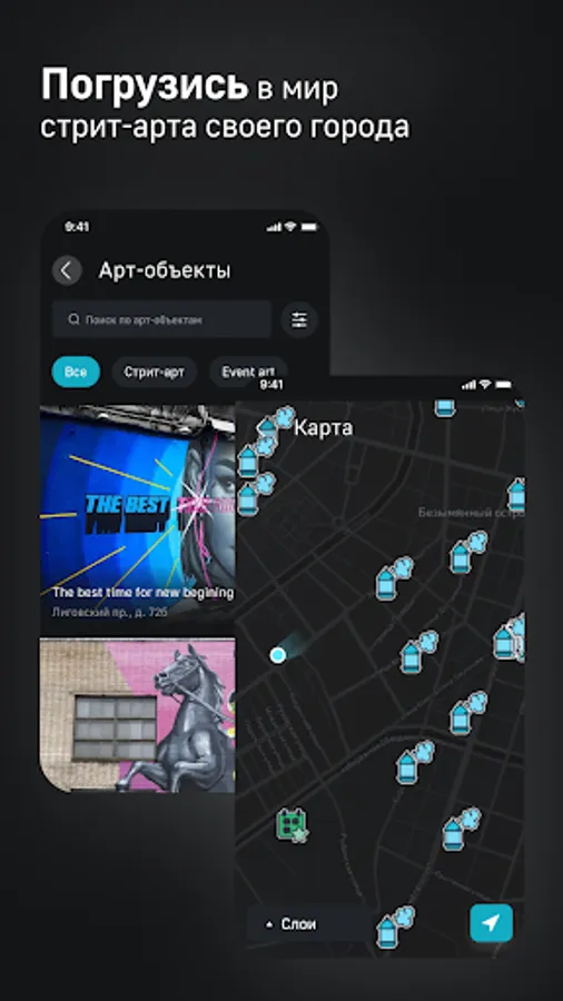 Follow the news in the application itself to find out about the latest events in the world of street art! We are glad to see you in Public ART!