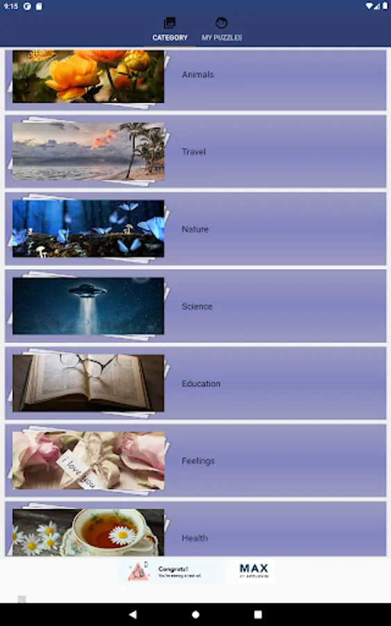 The application __ will dive into the world of beautiful images while assembling puzzles!