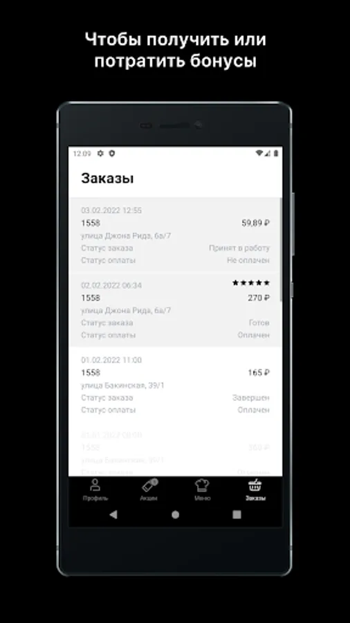 You will always know the latest news about promotions, bonus accruals and the development of new items in the menu.