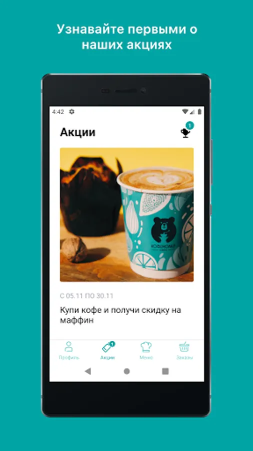 Use our application to be the first to know about new products, promotions, receive bonus points and pay with them in our coffee shops.