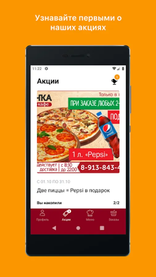 With the mobile application "Tochka" became even closer to regular guests and is always glad to new ones. With it you can:
