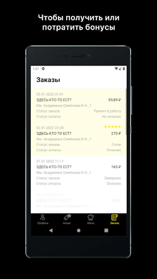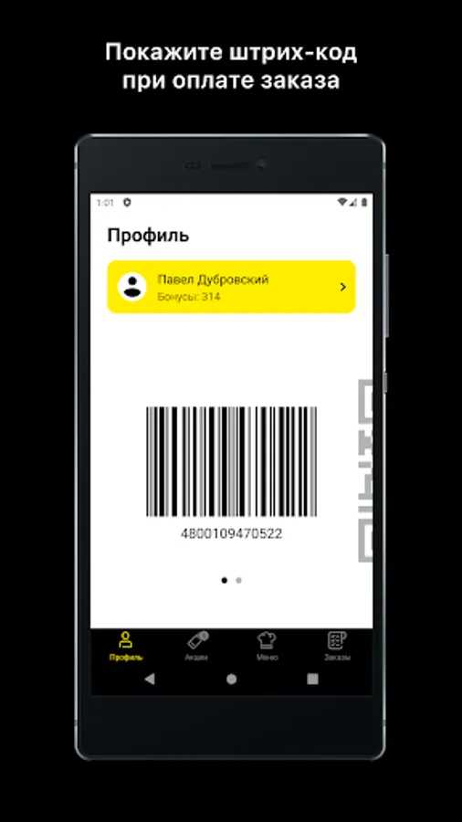 Download the app, get your unique QR code and show it at the checkout or place an order and enjoy your favorite food wherever you are! Bon Appetit!