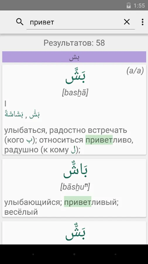 BARS: Large Arab-Russian dictionary with transcription.