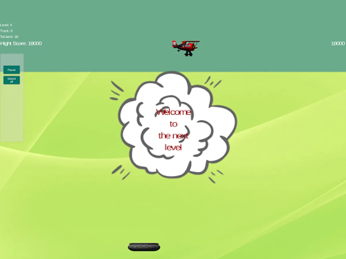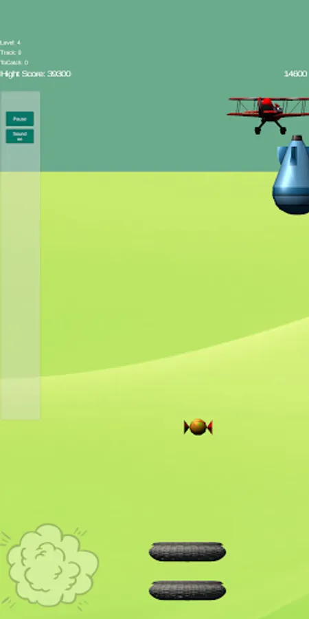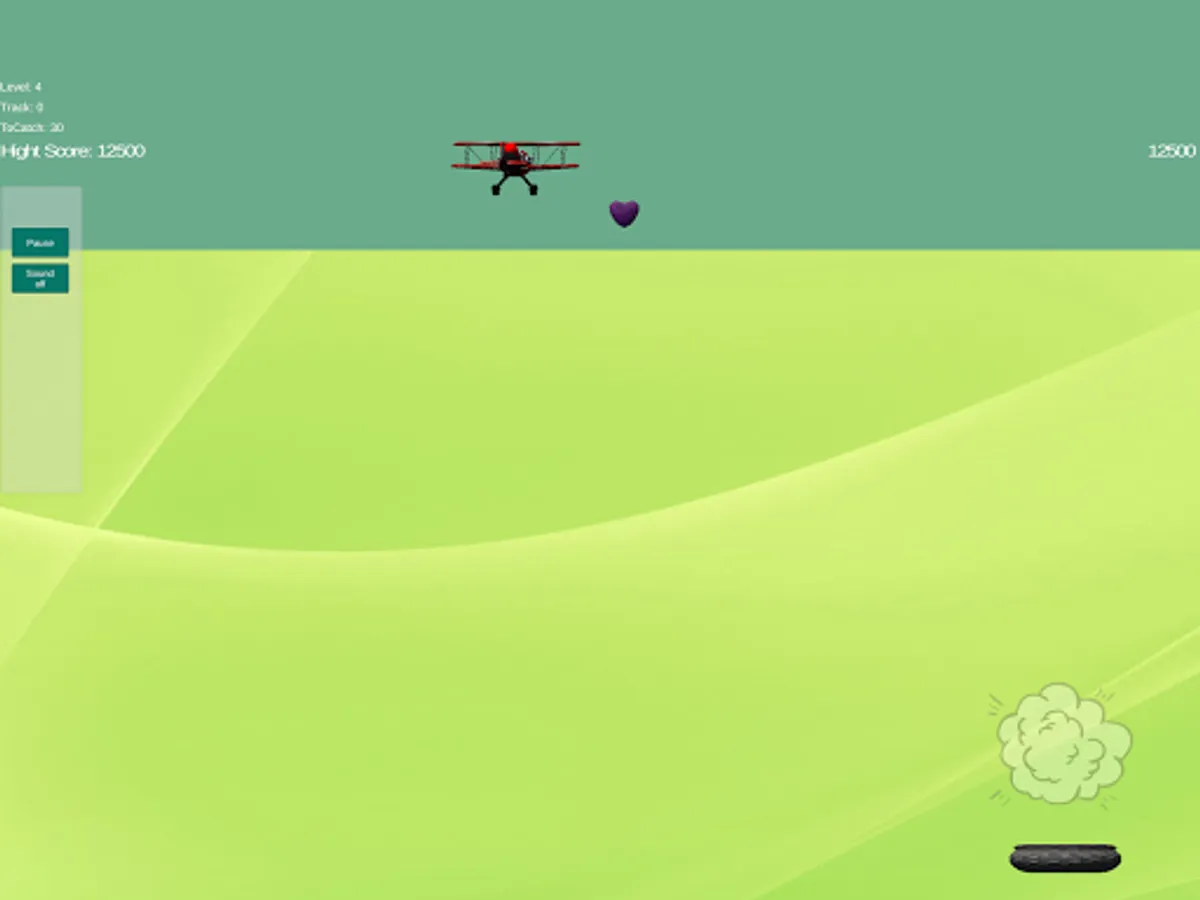 The gameplay is quite simple. At the top of the screen, a plane moves left and right along the horizontal line, whose favorite pastime is to throw off sweets and bombs and watch them explode bombs. The goal of the player is to catch sweets using three baskets located one above the other. Baskets are moved using the "tap" left-right on the lower horizontal of the screen. If at least one candy reaches the bottom of the screen or one of the bombs gets into the basket, one of the baskets is destroyed. After all the baskets are destroyed, the game stops. As you progress through the game, the speed and number of bombs thrown at a time increases, and the number of candies decreases. Game points are awarded for the captured candies, having caught 30 candies the player proceeds to the next level and again receives three baskets.