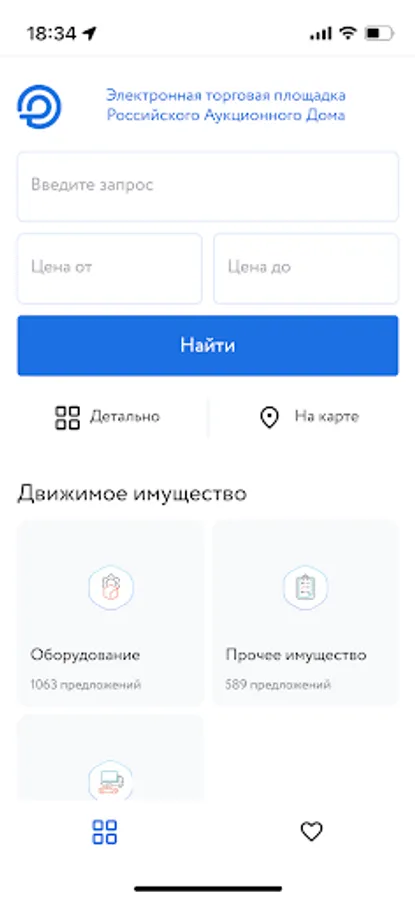 The application of the Auction House of the Russian Federation is the most complete catalog of assets that are sold at AH auctions (lot-online.ru platform):