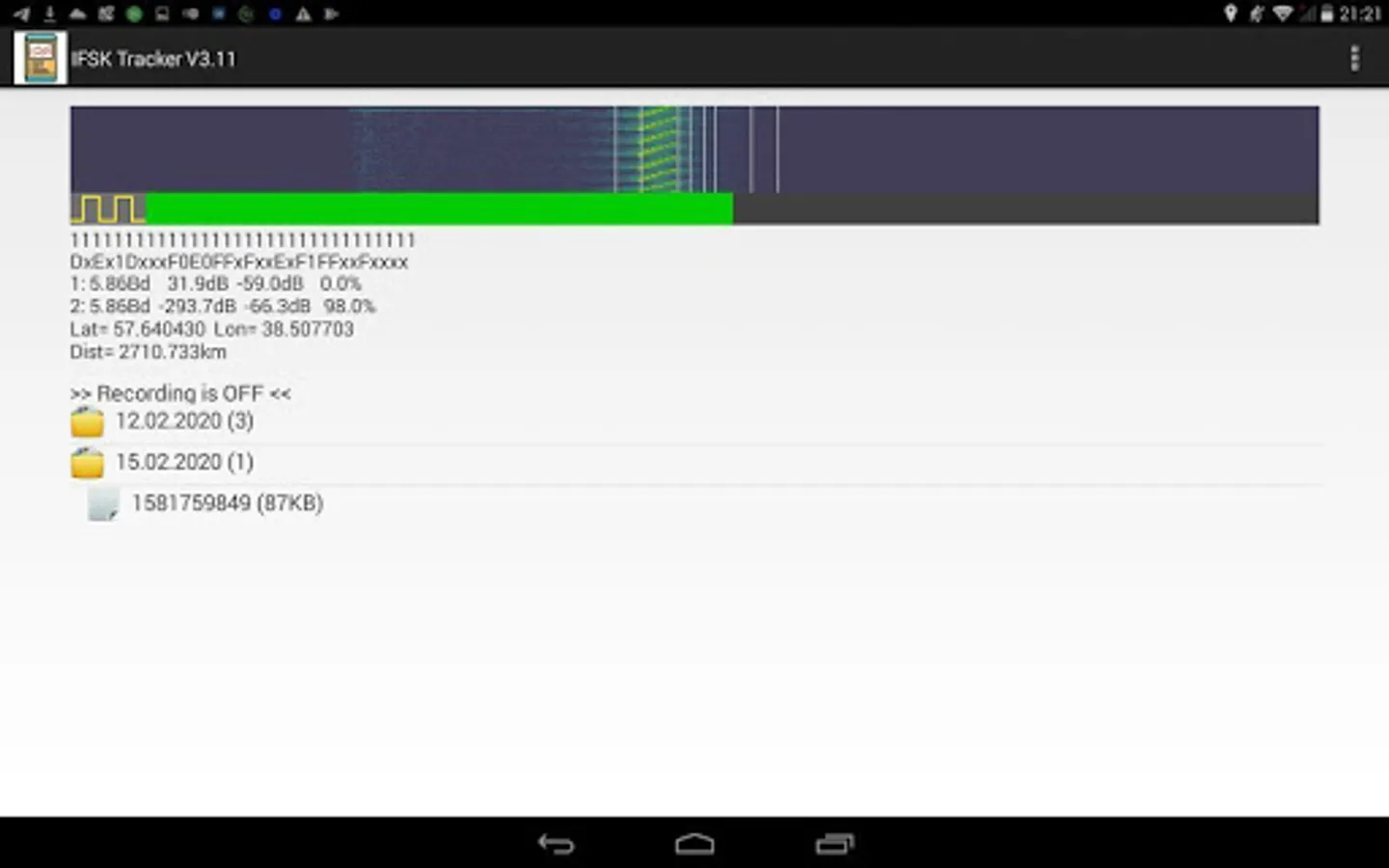 The IFSKTracker application allows you to plot the signal-to-noise level of a narrow-band IFSK signal versus distance or time. It is intended for the analysis of geographically extended radio paths or for estimating the passage of radio signals depending on the time of day. The principle of operation is based on the reception of a beacon signal emitting a reference modulated IFSK signal. A car (or any other vehicle) with a GPS receiver on board, having fixed the starting point, sets off with a connected radio tuned to the frequency of the beacon. A low-frequency signal with a set sound frequency and sideband (in the case of SSB) is fed to the input of an audio card (smartphone). Activation and deactivation of the recording occurs by pressing the corresponding button in the program menu. At the end of the recording, the data is saved in a separate folder