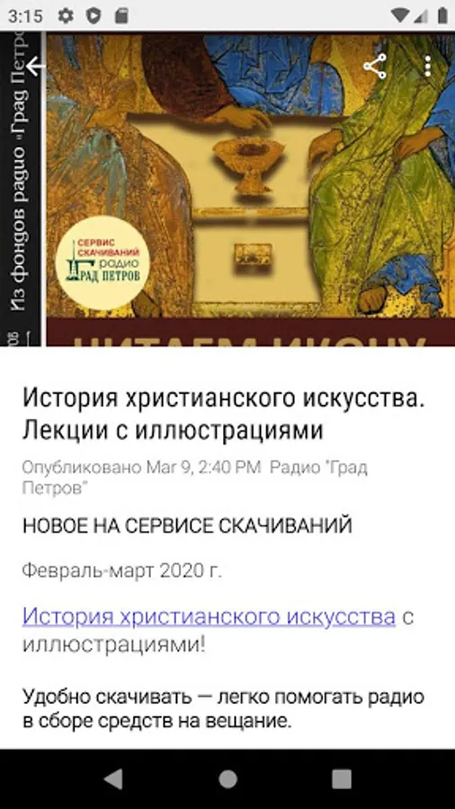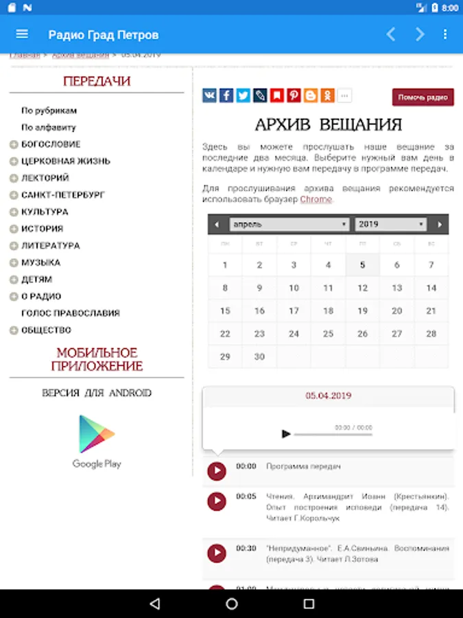 - Access to the official YouTube channel (view archive of videos and live broadcasts from the radio/worship studio).