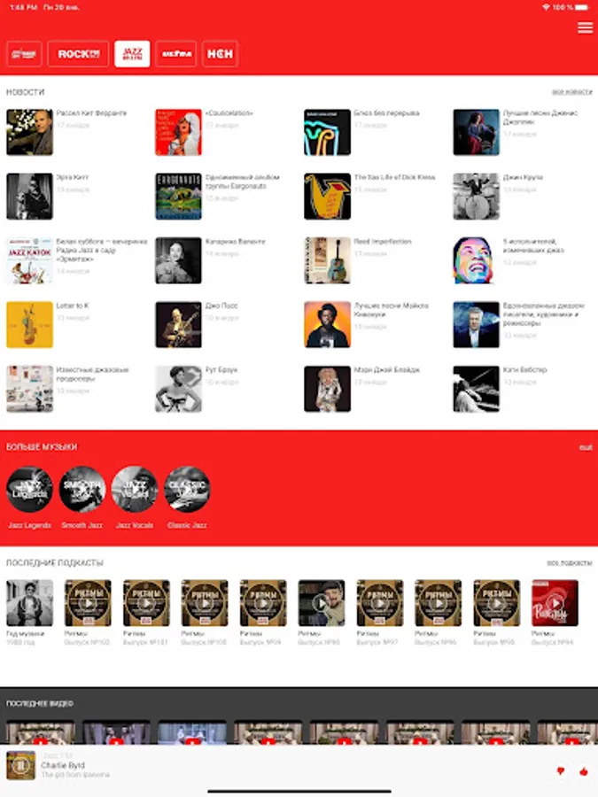Almost all jazz trends from vocal and instrumental classics, cool jazz and be-bop to the modern popular smooth jazz and blues are presented in their best samples on Radio JAZZ.