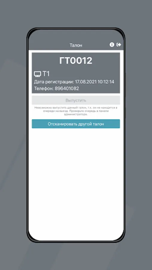 With the “TirParkAdmin” application, you can control the queue at the exit from the parking lot, scan coupons, release from the queue.