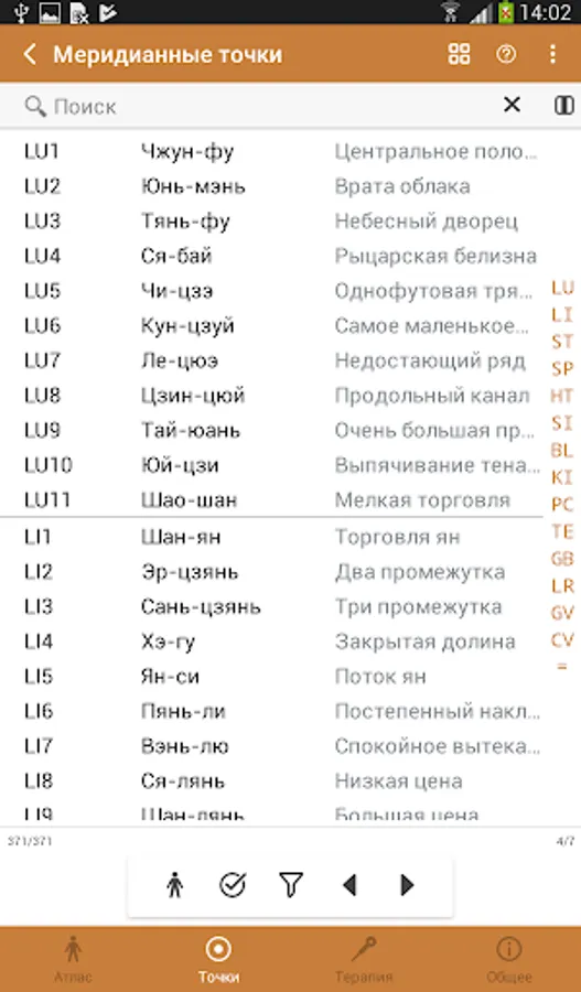 - search and filtering of meridians and points;