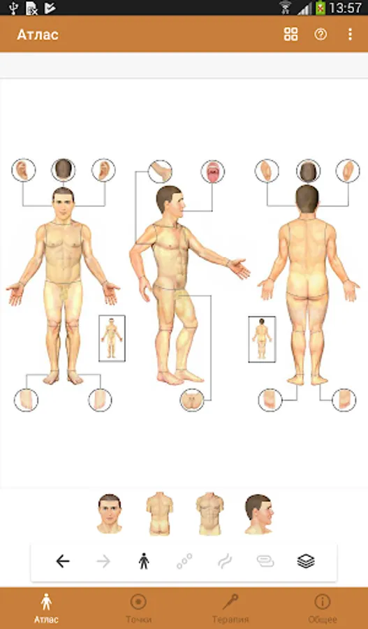 - areas of the body with passing meridians, balancing meridians according to Dr. Tan, corresponding projections, specific points for these areas;