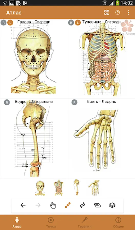 AcuStorm is an application for professionals, students and lovers of acupuncture, designed for operational use in the treatment process. Currently, the application supports acupuncture styles: traditional, 5 Primary Elements, meridian, Dr. Tan's Balance method, and Master Tong's acupuncture.