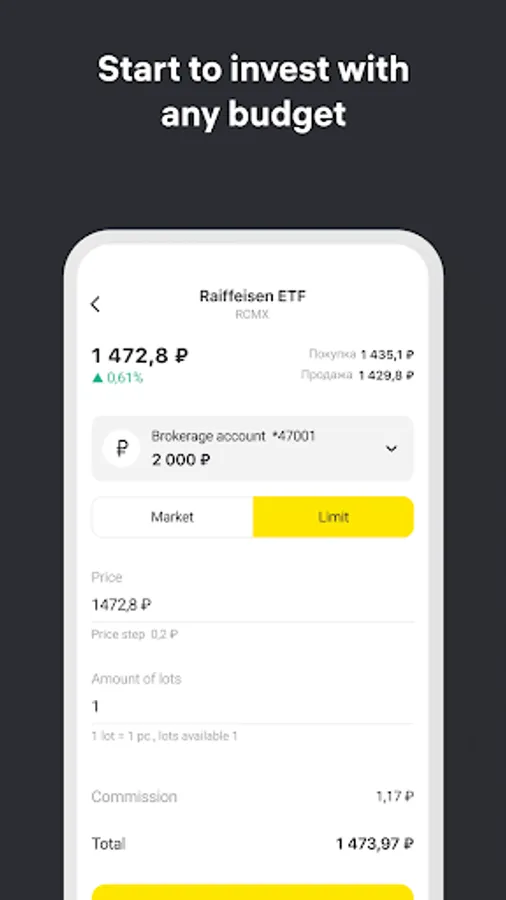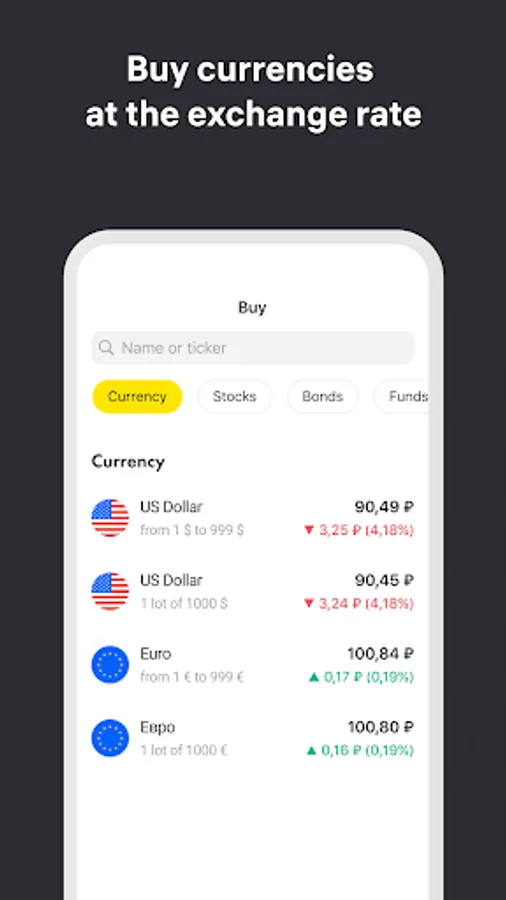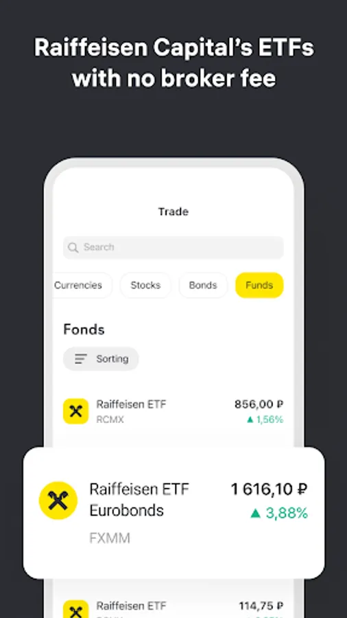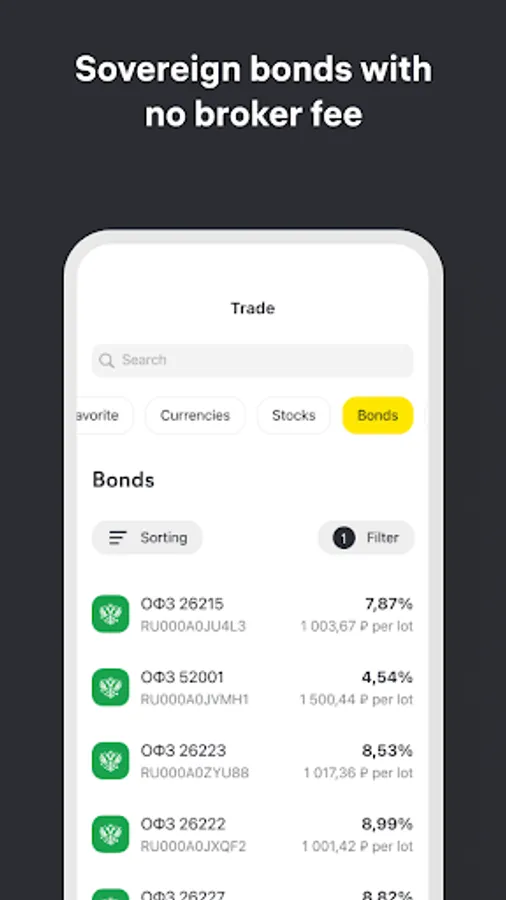 ‣ Stocks, corporate and government bonds (OFZ), eurobonds, and exchange-traded funds (ETF) with no broker fee.