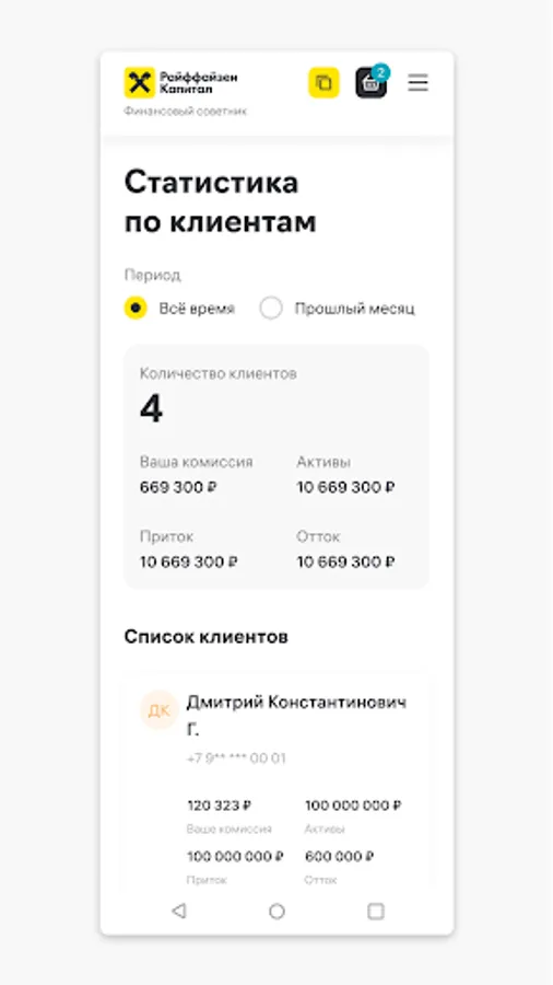An application for those who work as a financial and investment advisor and offer clients Raiffeisen Capital products: mutual and exchange-traded funds, as well as trust management strategies. When clients invest in Raiffeisen Capital products using your referral link, you can see their results and help them earn more.
