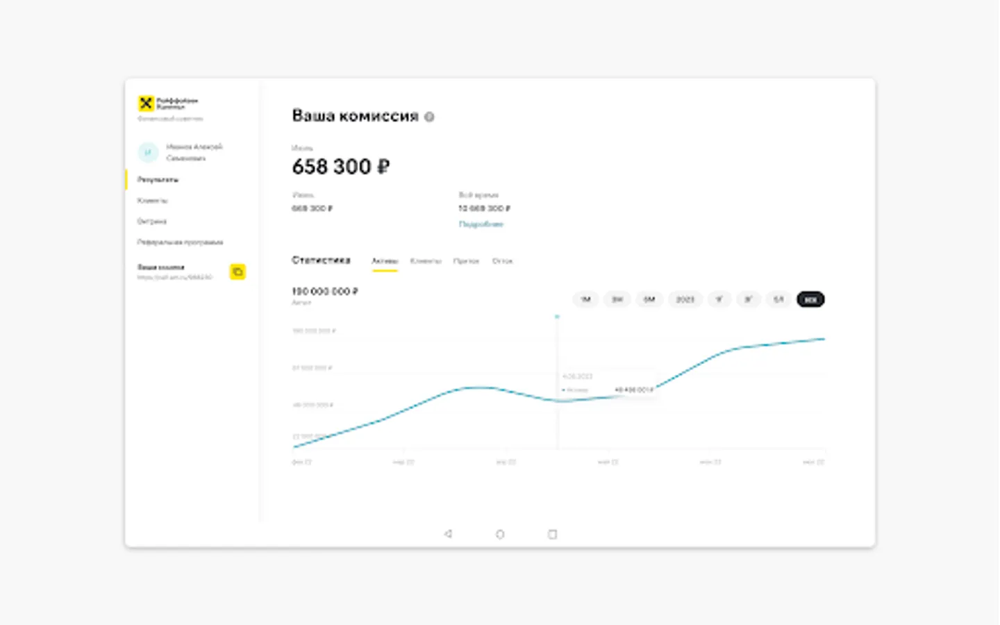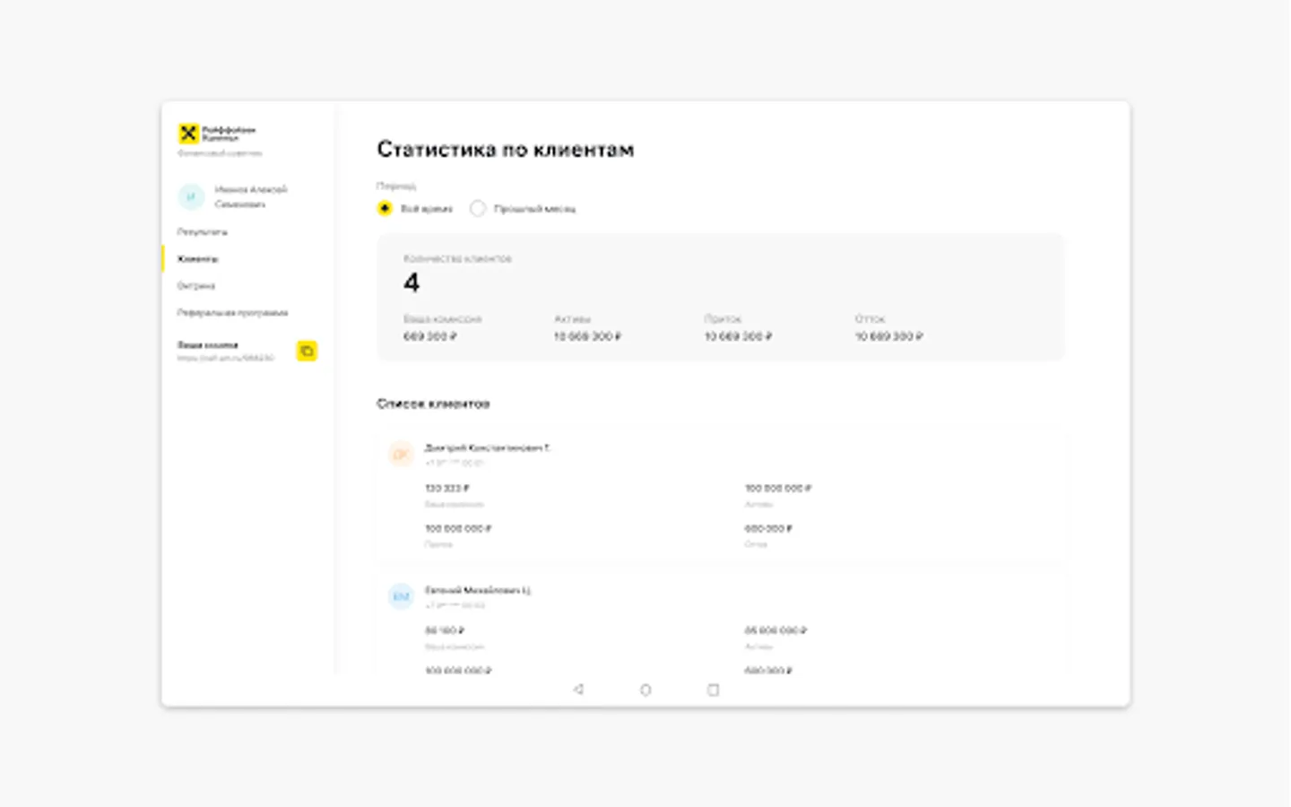- Monitor your statistics: the number of clients and the volume of their assets, as well as inflows and outflows of assets
