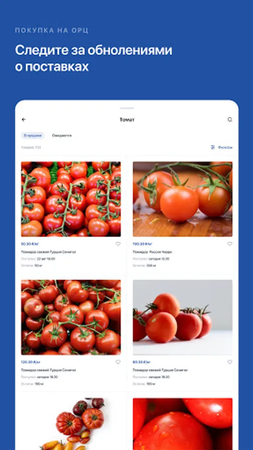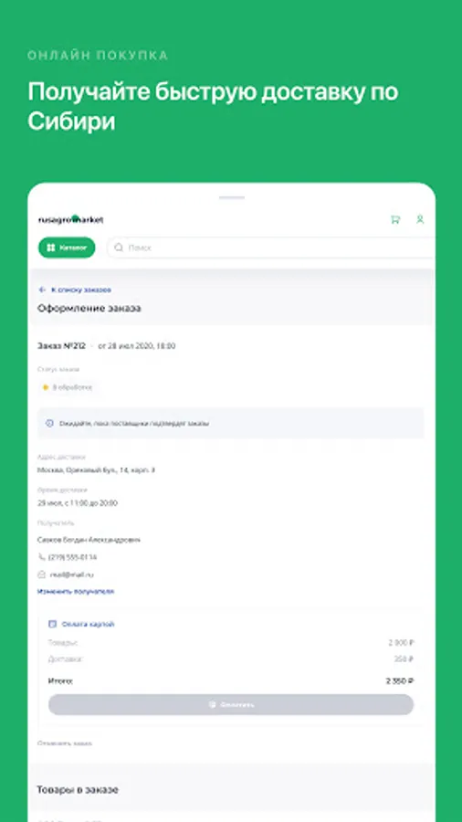 RusAgroMarket Application for Customers is a platform for online trading. As well as an IT platform for analyzing supply and demand of goods, pricing, monitoring product quality.