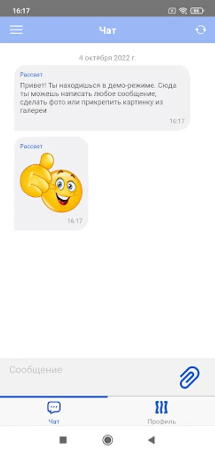 Demonstration of the simplicity of developing a mobile application for any configuration using the example of a chat with employees who are users of the database