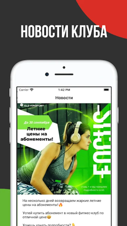 Now the club is always nearby: write in the chat, see the schedule, sign up for training, freeze the card, be the first to know about discounts!