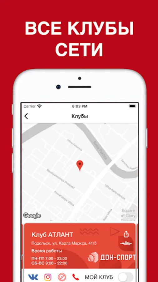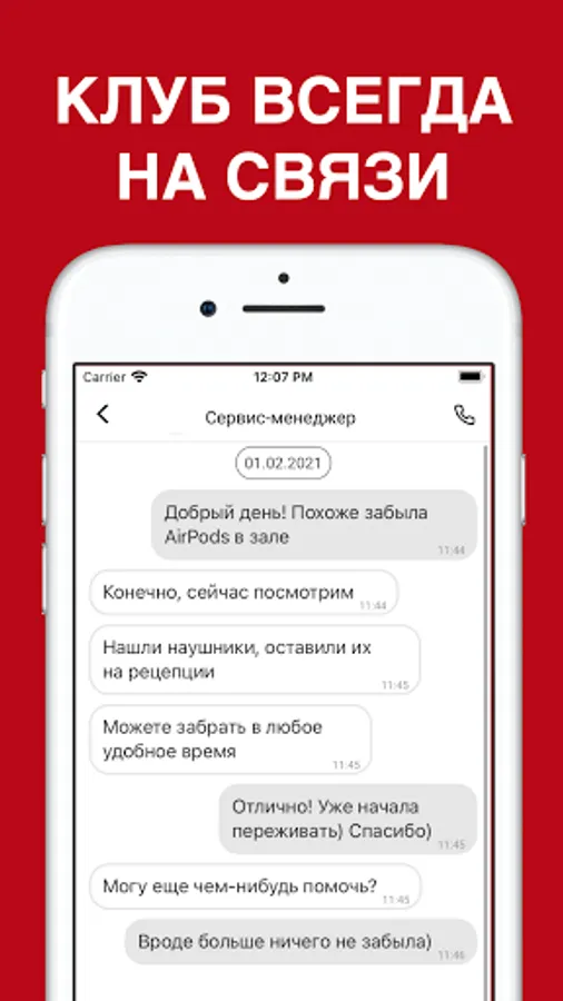 Now the club is always nearby: write in the chat, see the schedule, sign up for training, freeze the card, be the first to know about discounts!