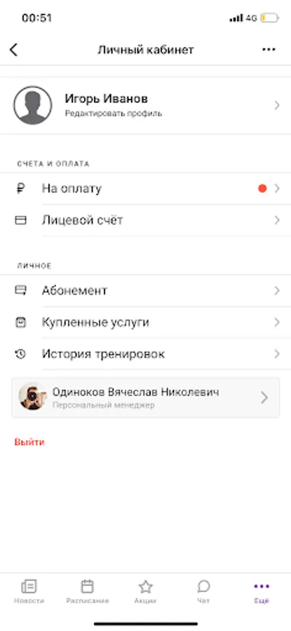 – sign up for group and personal training on your own without queues and calls