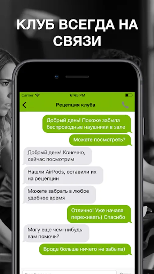 Now the club is always nearby: write in the chat, see the schedule, sign up for training, freeze the card, be the first to know about discounts!