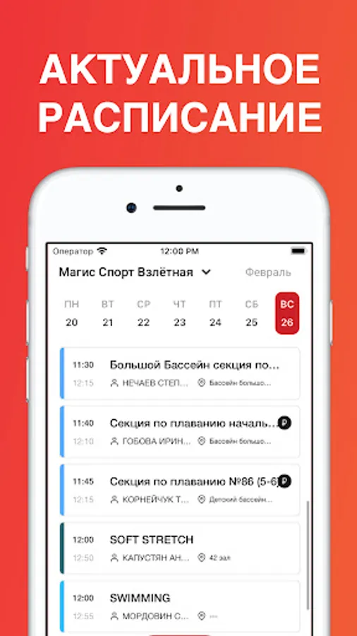 - View the schedule of personal and group classes