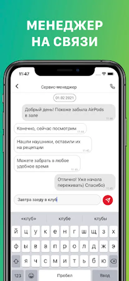 Now the club is always nearby: write in the chat, see the schedule, sign up for training, freeze the card, be the first to know about discounts!