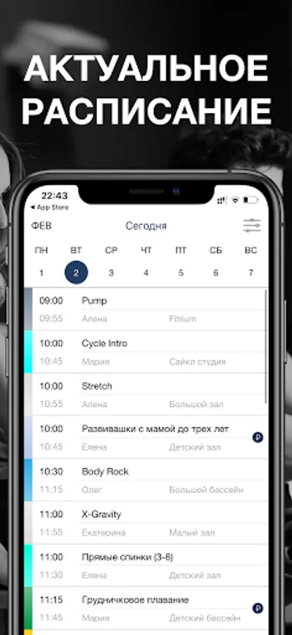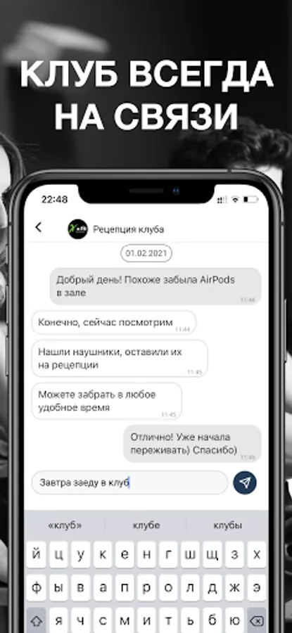 Now the club is always there: write in chat, see the schedule, sign up for training, freeze the card, be the first to know about discounts!