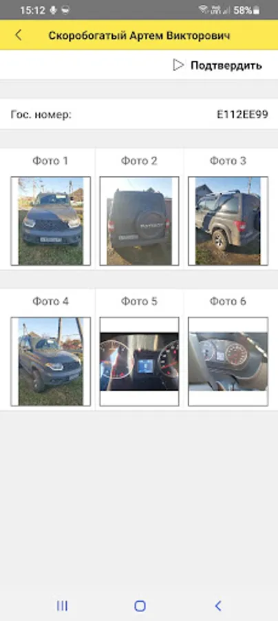 The application was created for the internal use of the taxi company. Checking, photographing damaged cars and controlling drivers for the safety of the vehicle. Photos are saved in the cloud in folders for a specific date and by state number.