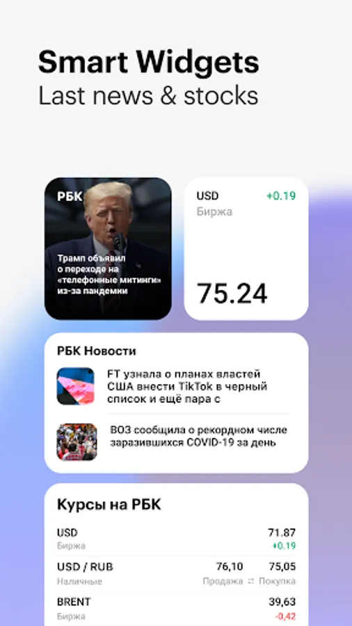 Politics, society, auto, investment, style, sports, culture, finance and more. We are constantly publishing something new, while your feed displays only what is interesting to you. And you can follow the development of events in real time on the air of the RBC channel or using widgets.