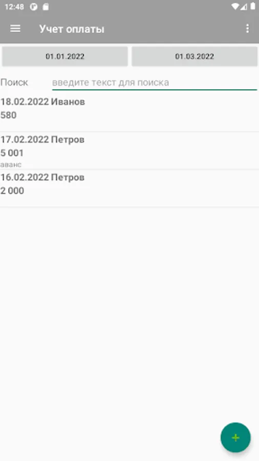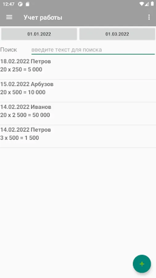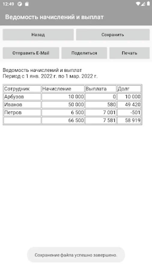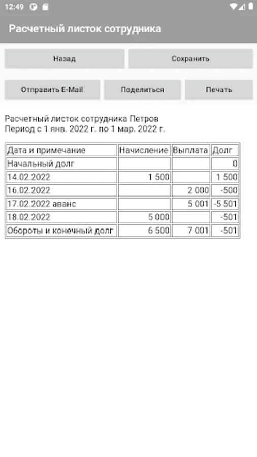The application allows you to take into account the work performed by employees and the payment of wages to them. The application can also be used as a time sheet.