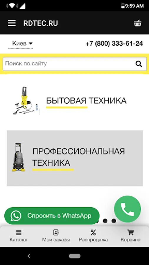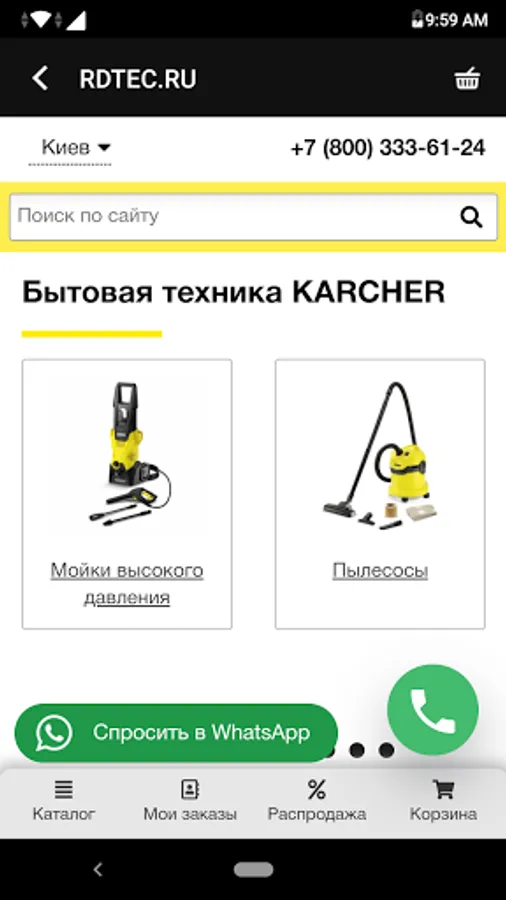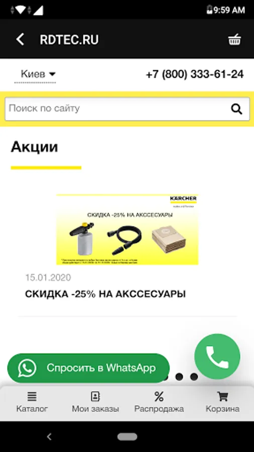 In the application you will find a catalog of Karcher equipment, accumulated bonuses, and you can also place an order.